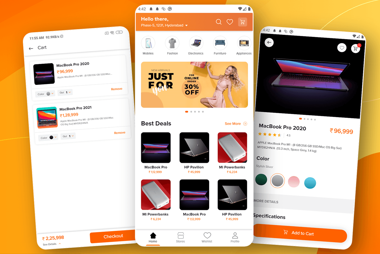 A clean and intuitive mobile shopping experience designed to boost product discovery, streamline cart interactions, and simplify the checkout journey.